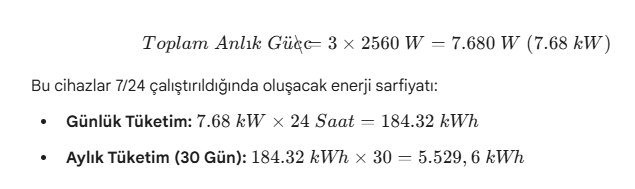 Birim Güç Tüketimi: 2560 Watt (2.56 kW)