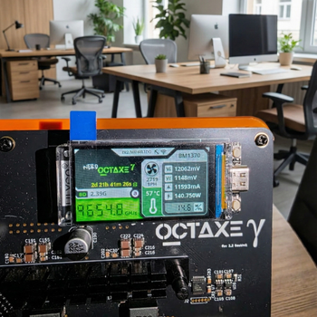NerdMiner ve Bitaxe 601 BTC solo miner projesinden ilham alınarak tasarlanan ve Türkiye’de yerli olarak üretilen NerdOCTAxe, SHA-256 algoritmasını destekleyen tüm kripto paralar ve özellikle BTC (Bitcoin) için özel olarak geliştirilmiş bir mühendislik harikasıdır.
