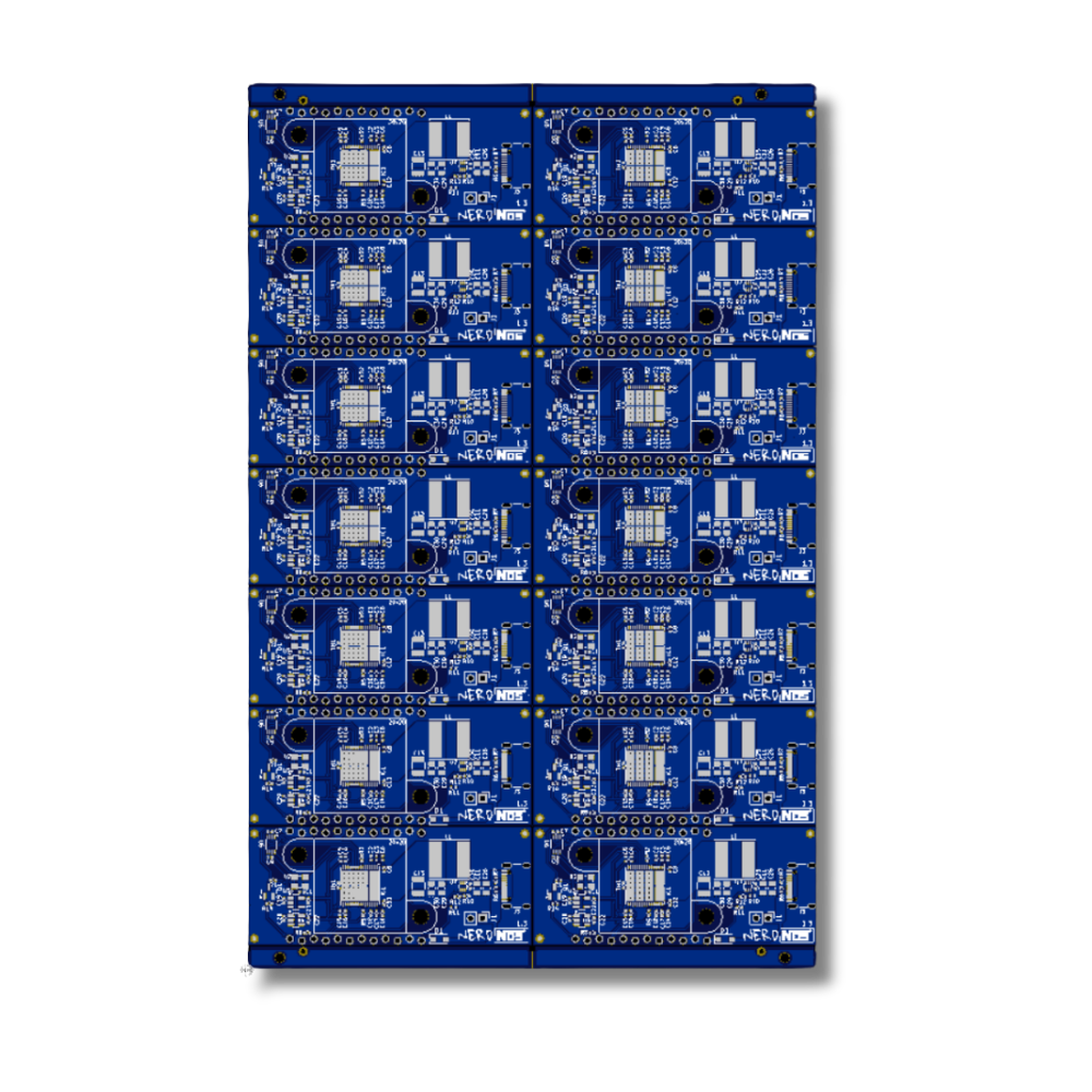 * NerdNOS pcb 1 panel / 14 pcs pcb panel layout design includes +5mm edge rails.