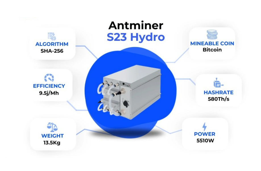 Bitmain Antminer S23 Hydro, 580 Th/s'lik bir hash oranı sunarak Bitcoin madenciliği için son derece verimli bir cihazdır.