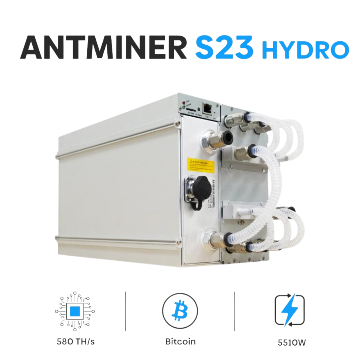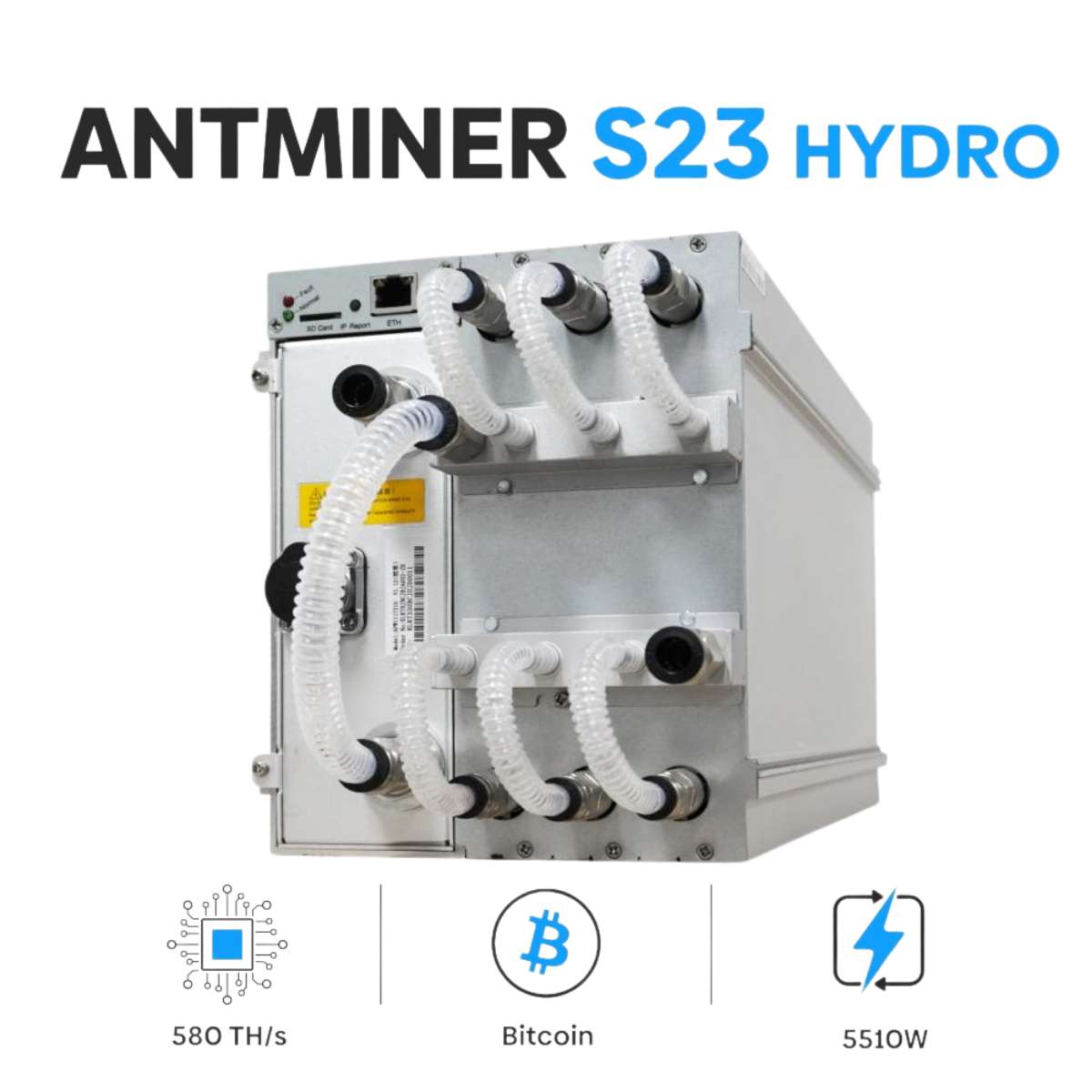 Bitmain Antminer S23 Hydro 580TH/s, Bitcoin madenciliği için geliştirilmiş, en yeni nesil SHA-256 ASIC madenci modellerinden biridir. Yüksek işlem gücü, gelişmiş hidro-soğutma (sıvı soğutma) teknolojisi ve endüstriyel verimlilik odaklı tasarımıyla, profesyonel ve büyük ölçekli madencilik operasyonları için üretilmiştir.